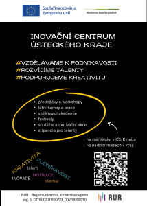 Připrav se na budoucnost s Inovačním centrem Ústeckého kraje a přetvoř své myšlenky na skutečnou cestu k podnikání! Nabízíme vzdělávací programy pro rozvoj kreativních a podnikatelských dovedností. Připojujeme teorii s praxí, organizujeme workshopy a festivaly pro podporu kreativního myšlení, přinášíme motivační a soutěžní akce a nabízíme mentoring, kterým tě posuneme kupředu. Klikni na icuk.cz/sluzby/edu/ a objev, jak můžeš s námi růst, učit se a tvořit budoucnost.